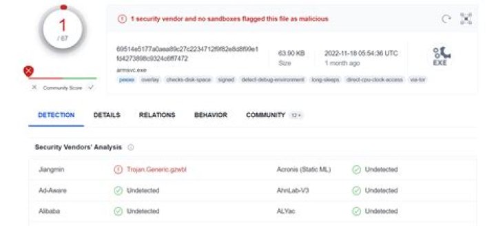 | Cynet | Malicious (score: 100) |